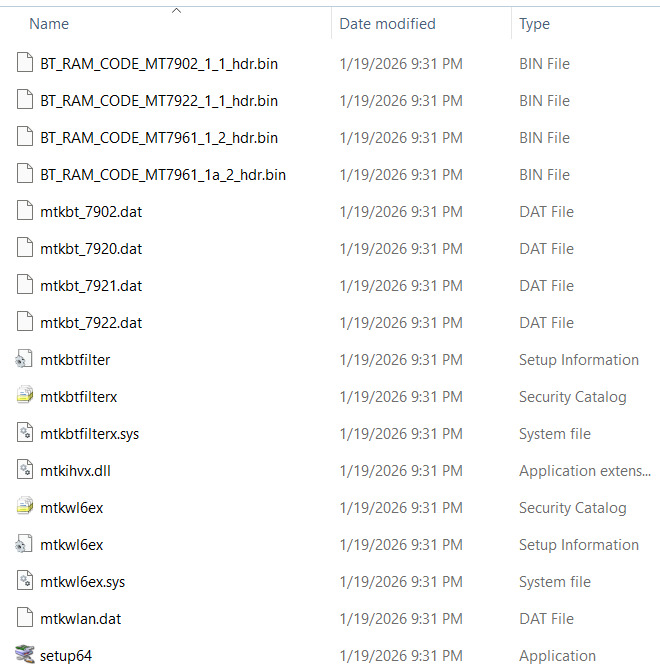 Model: MediaTek MT7921 Wi-Fi 6/6E Wireless LAN DriversVendor: MediaTek